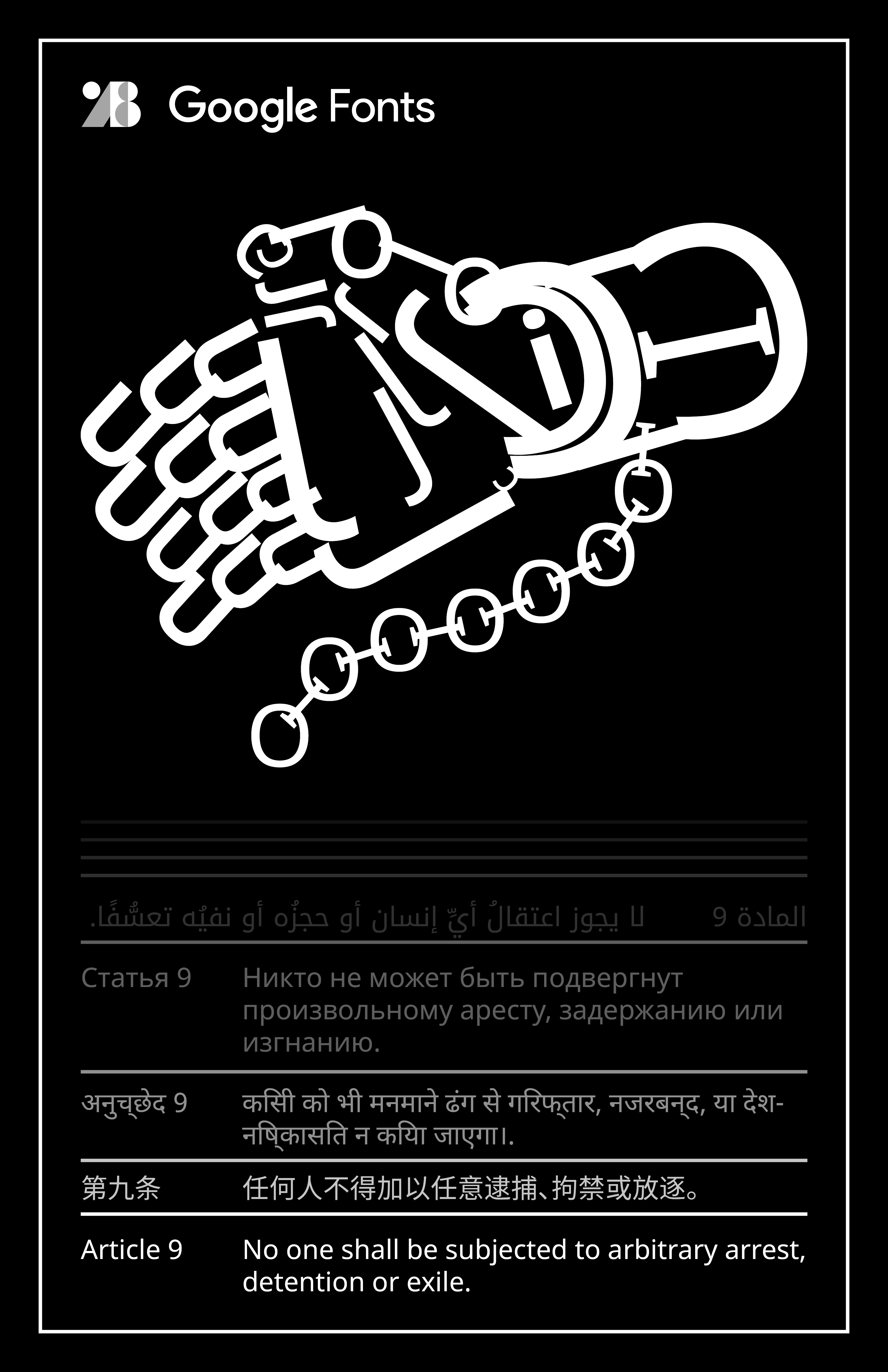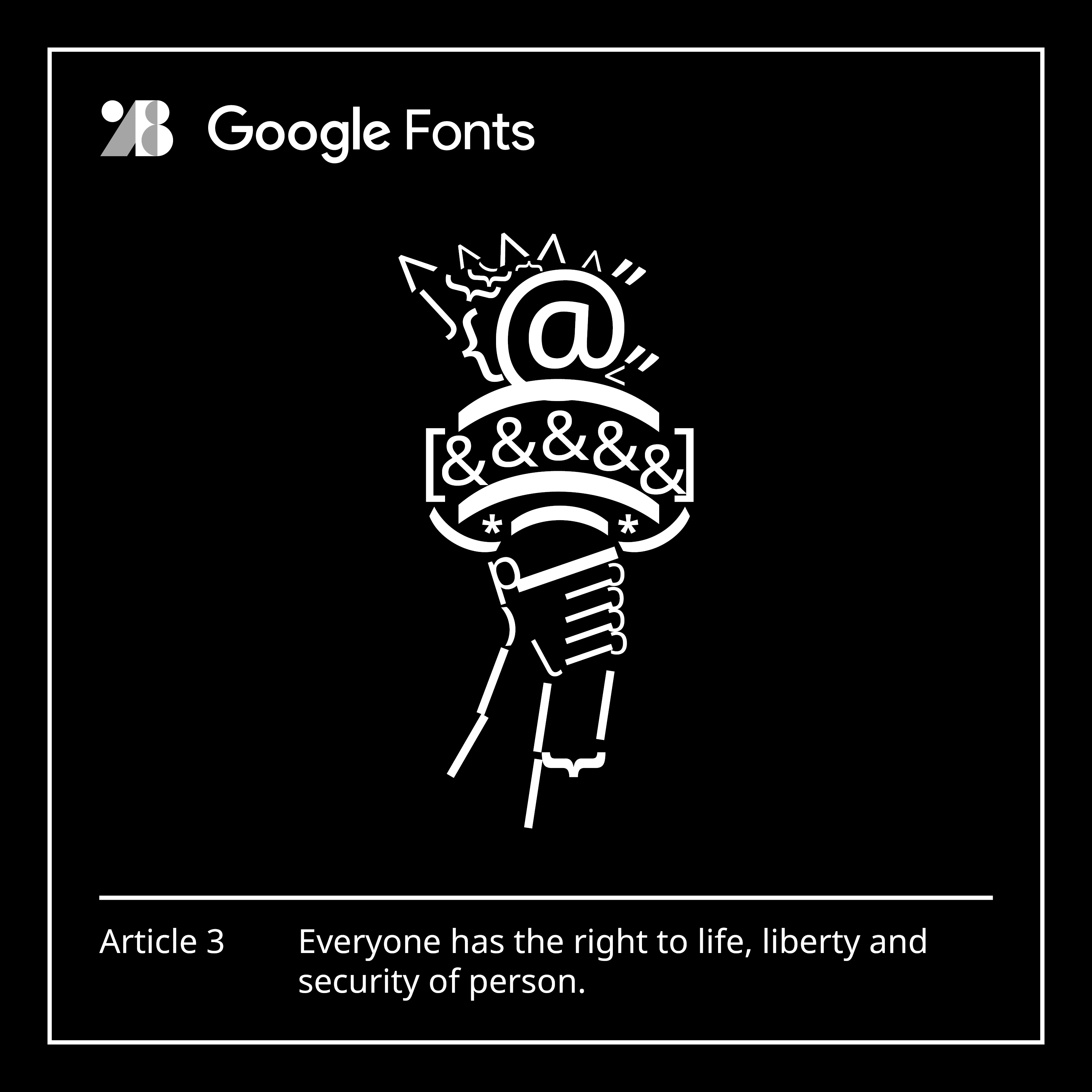 Google Fonts allows for vast swathes of the web to have compelling designs, all for the cost of nil. Through partnership with HMCT, Google Fonts wants to celebrate the ultimate document of freedom in today’s world through the expressive power of type.